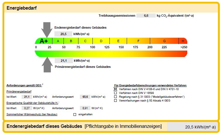 Energiekennwert: 20,5 kWh/(m²*a)