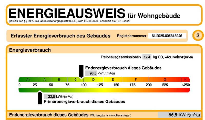 Energiekennwert: 96,5 kWh/(m²*a)