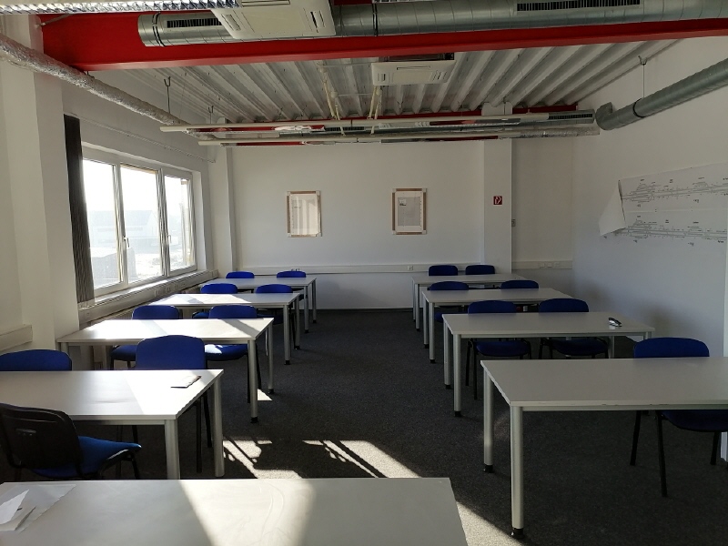 Alle Büroräume besitzen abgehängte Decken mit eingebauter, PC-geeigneter Beleuchtung, sowie Telefon- und Netzwerkanschlüssen. Die Büros sind ferner klimatisiert. Die Fußböden sind mit Nadelfilz ausgelegt; zwei Räume verfügen über Echtholz-Stabparkett das neu aufgearbeitet wurde. Sämtliche Wände sind mit Raufasertapete beklebt und weiß gestrichen. Eine kleine Teeküche ist integriert. Getrennte Damen und Herren WC´s, sowie ein separater Serverraum sind ebenfalls vorhanden. Alle Fensterflächen sind isolierverglast; die Fenster der Westseite zusätzlich von außen zu beschatten. Die gesamte Fläche ist alarmgesichert und erfüllt diverse Secure-Vorgaben. Sofern eine andere Raumaufteilung gewünscht ist, wäre der Vermieter auch hier gesprächsbereit.