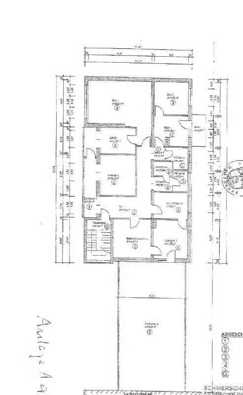 Am Eingang der Fläche befindet sich eine großzügige Anmeldung/ Empfang für die Besucher. Es sind 5 unterschiedlich große Büroräume vorhanden, die frei zugeordnet werden können.