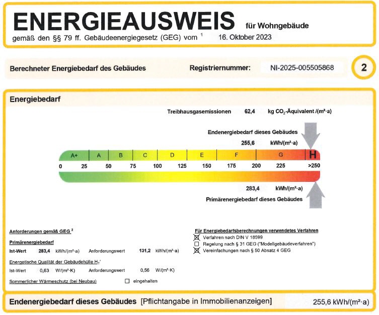 Energiekennwert: 255,6 kWh/(m²*a)