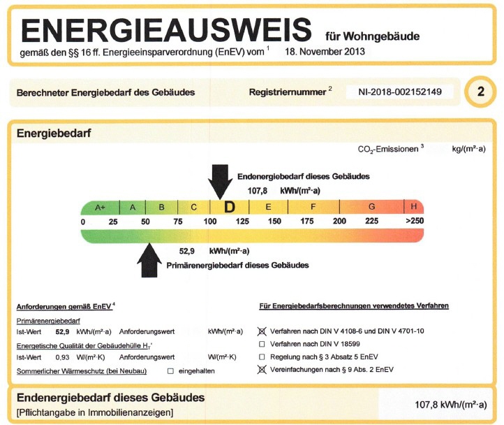 0 25 50 75 100 125 150 175 200 225 250+ H G F E D C B A A+ H G F E D C B A A+ Endenergiebedarf 107,80 kWh/(m²·a)