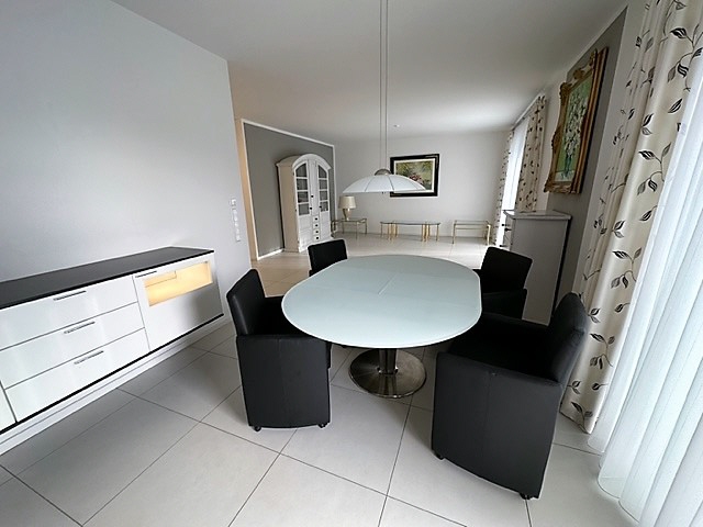 Der moderne Grundriss dieser Wohnung bietet eine offene Küche und großzügigem Wohn-/ Eßbereich. Als Bodenbeläge wurden in der gesamten Wohnung sehr hochwertige Fliesen ausgewählt. Den großzgügige Süd-Balkon mit Wasseranschluss erreichen Sie über große Schiebeelemente. Das moderne Badezimmer verfügt über eine bodengleiche Dusche und Badewanne. Die hochwertige maßangefertigte Einbauküche der Marke LEICHT mit Elektrogeräten der Marke Miele, neuwertige, maßgefertigte Einbauschränke in einem der Kinderzimmer und Gäste-WC, der eingebaute Tresor im Abstellraum (ca. 8 m² groß), die elektrischen Rollläden als Sicht-/Sonnenschutz, die Fußbodenheizung sowie Fliegenschutzgitter vor allen 3-fachverglasten Fenstern bieten hochwertigen Komfort.